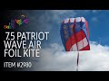 Keep flying no matter where the road takes you with this colorful Patriot Wave 7.5 Parafoil Kite! These frameless wonders pack down tight into a reusable stuff bag making them perfect to pack in a suitcase, backpack, or to keep in your car for whenever the need to fly calls. With no fiberglass rods, this single-line kite is ready to fly with kite line and handle included.